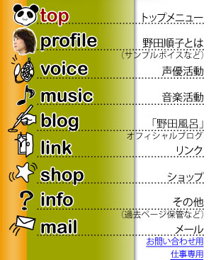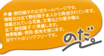 声優・野田順子(のだじゅんこ)の公式サイトです。アニメ・ゲームなどの声優の他に、音楽方面でも活躍中!